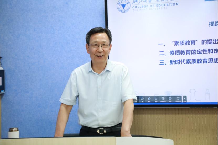 南楼123会议室开展2025年第四次集体学习。本次学习特邀浙江大学张应强教授作题为“从党的教育方针看素质教育思想的新发展”的主旨报告。教育学部党委理论学习中心组全体成员参加学习。