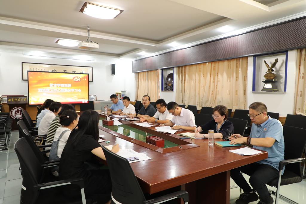 会上,研究生第三党支部书记李昕禧领学习近平总书记致全国优秀教师代表的信,全体与会党员围绕大力弘扬教育家精神这一主题,进行深入交流研讨。教工党支部书记李春迪与研究生辅导员商雪敏表示,教师应谨遵教师职业道德规范,在个人积极践行教育家精神的同时,更需要教育引导广大师范生深入学习领会教育家精神,坚定心有大我、至诚报国的理想信念,全面落实立德树人根本任务。与会同志纷纷表示,习近平总书记的重要指示立意高远、内涵丰富,充分体现了以习近平同志为核心的党中央对教育和教师的高度重视;并表示一定认真贯彻党的教育方针,大力弘扬教育家精神,潜心教书育人、培根铸魂,持续为国家培养德智体美劳全面发展的社会主义建设者和接班人,造就更多可堪大用、能担重任的栋梁之才。