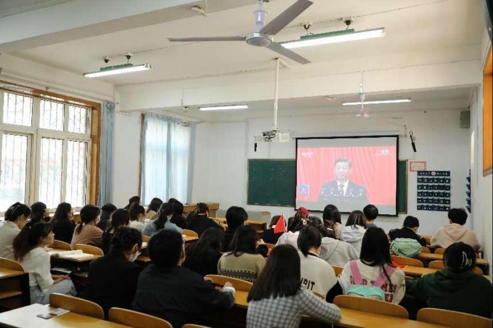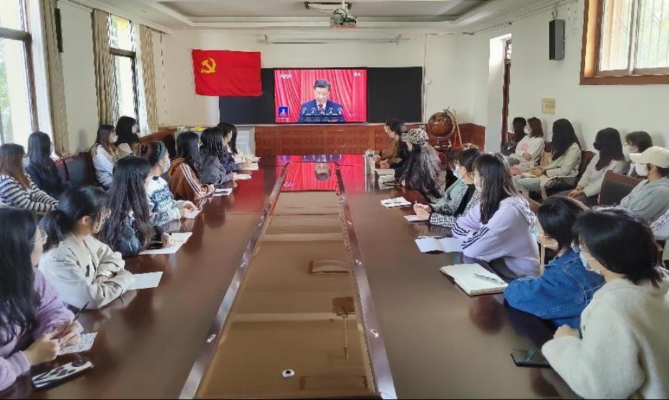 本科生党支部在学院103教室集体收听收看开幕会盛况