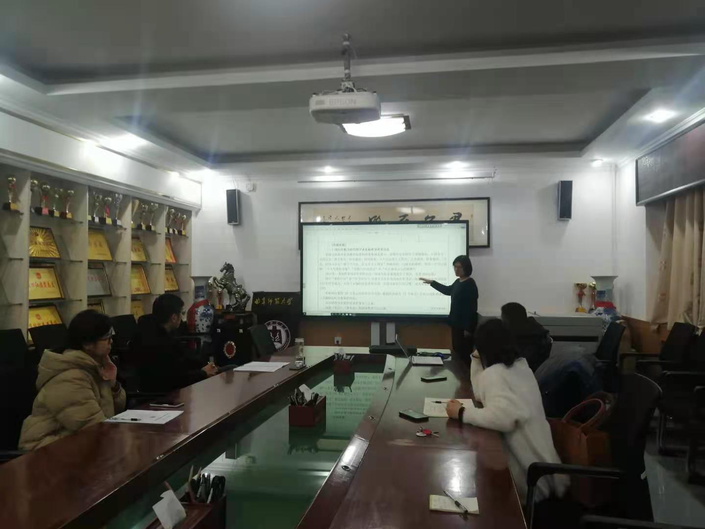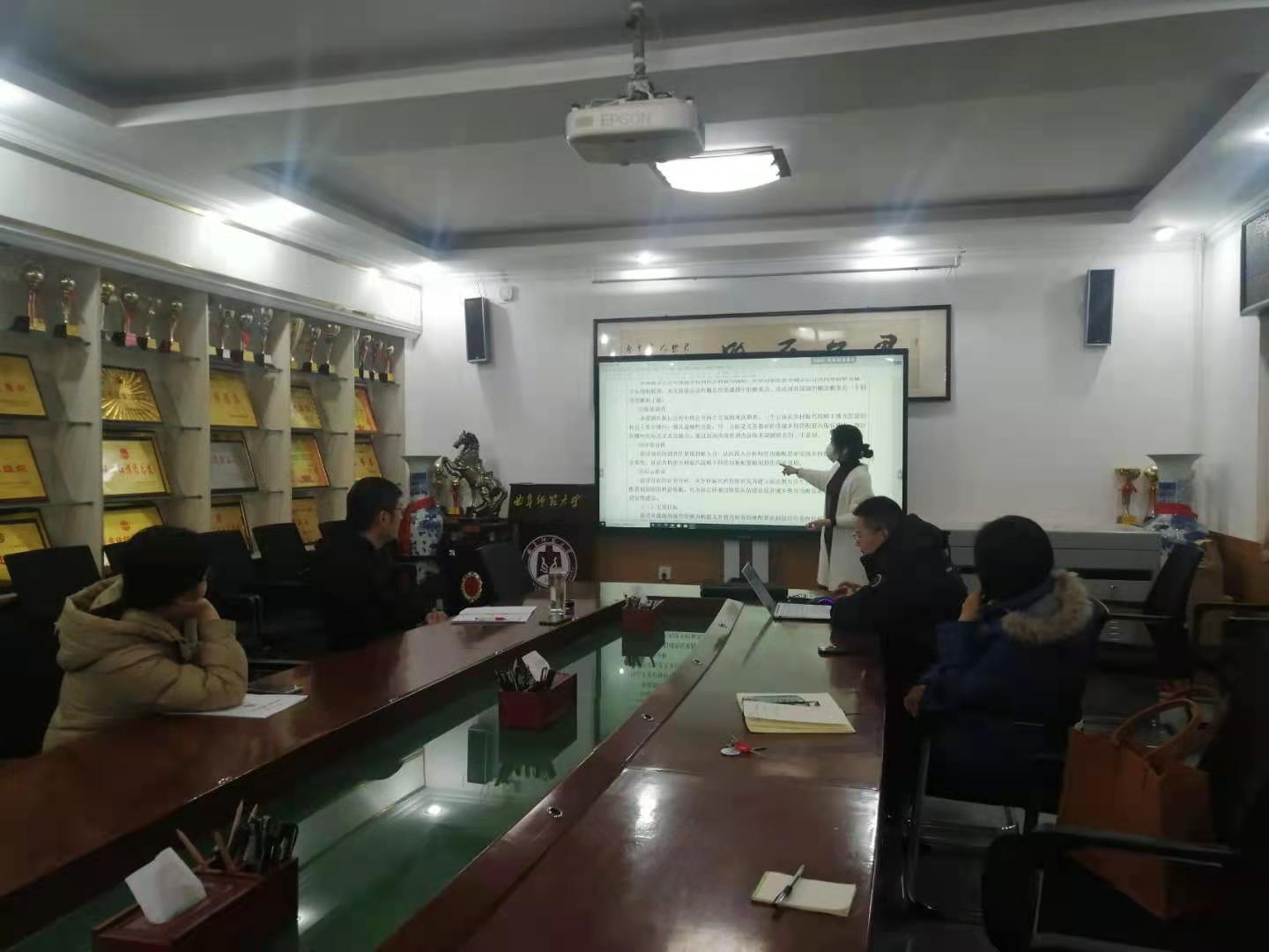 接着,老师们依次汇报了选题依据及项目论证进展情况,大家围绕着选题的角度、创新点、核心内容等的方面进行了充分的交流,并相互提出了有针对性的修改建议。
