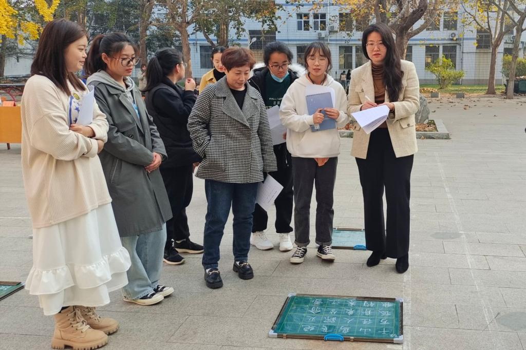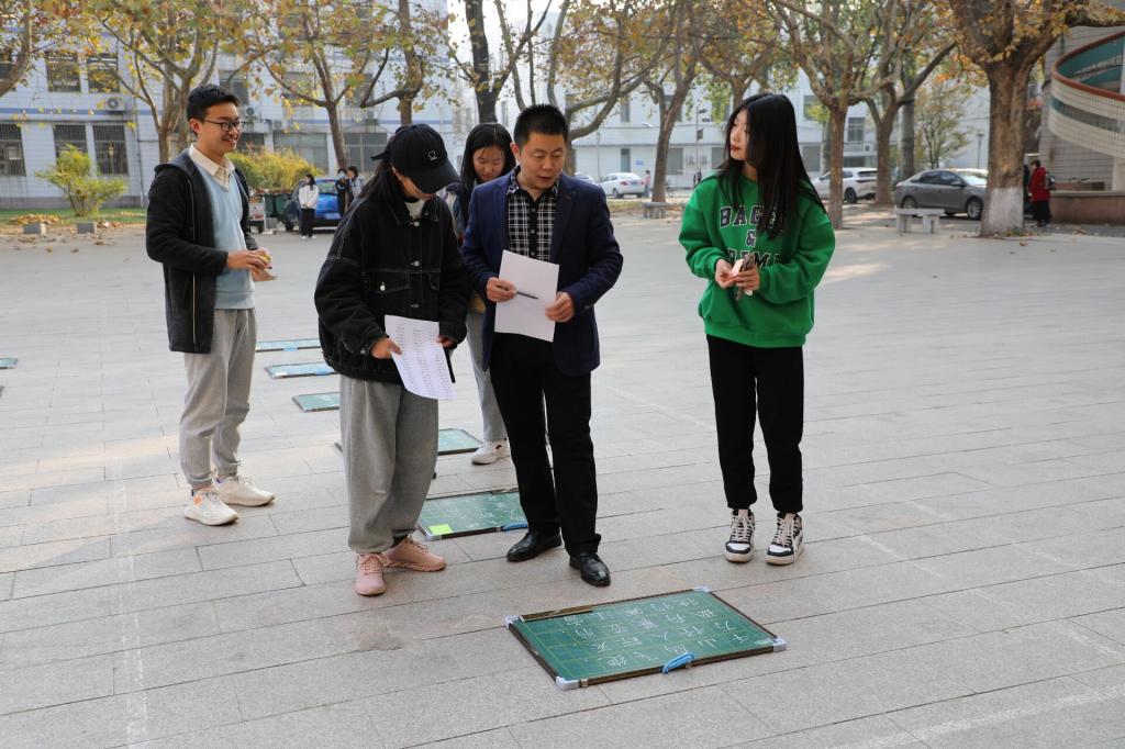 楼前举办“粉墨抒师情,书香蓄神韵”粉笔字大赛。学院党委副书记孙超出席活动,团委书记周长缨,辅导员王保英、张东霞、商雪敏参加活动。本次比赛特邀书法学院徐可然老师,兰亭书社社长李思娜和部分社员担任评委。
