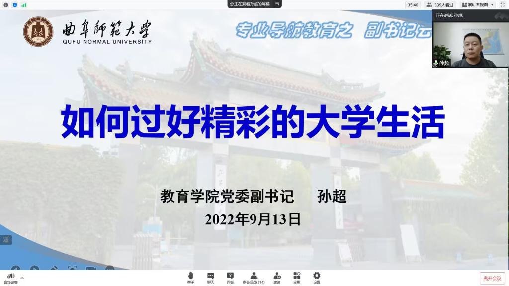 p站视频 讯(通讯员:林安姝  邓玉)为帮助2022级新生更好地熟悉新环境,适应新角色,开启新征程,9月13日,p站视频 为2022级新生开设“副书记云班会”——如何过好精彩的大学生活,班会由党委副书记孙超主持召开。
