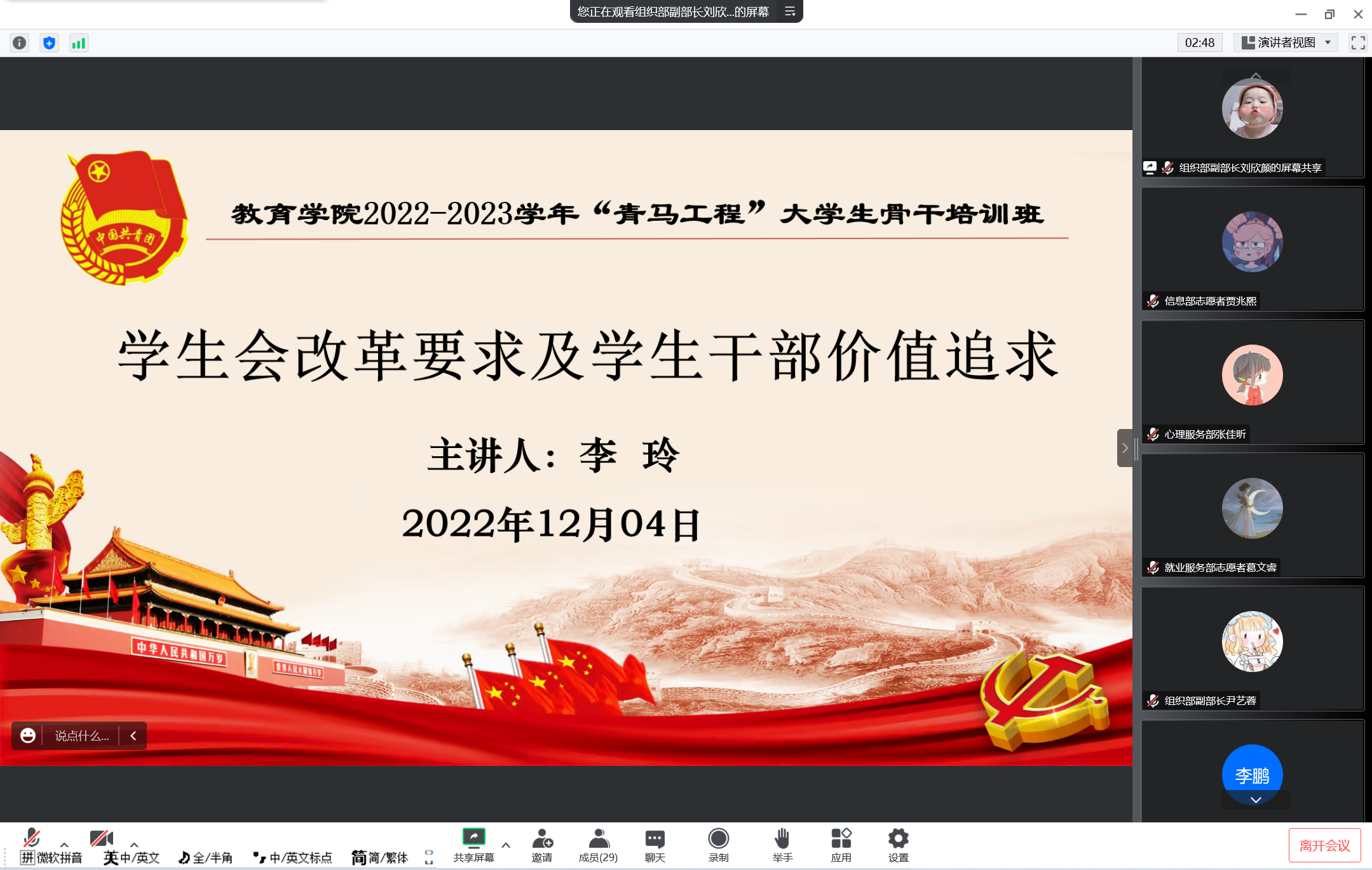 “青马工程”大学生骨干培训班第六讲以线上形式顺利开讲。本次课程由p站视频