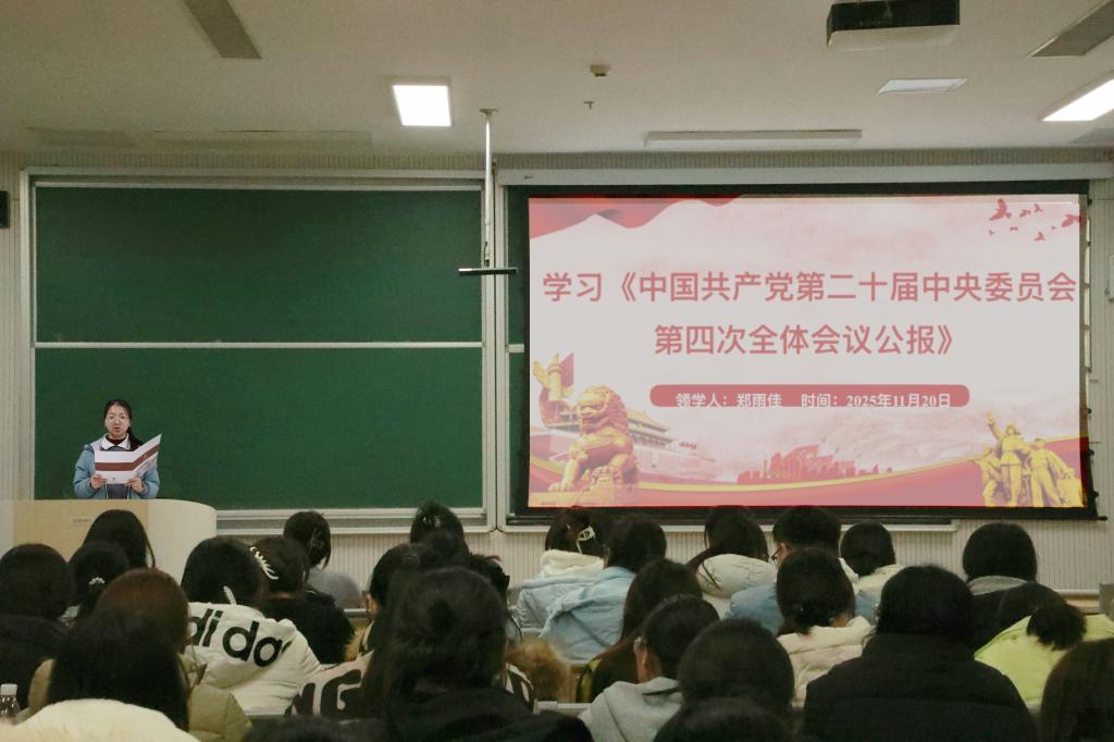 团委组织部副部长郑雨佳领学《中国共产党第二十届中央委员会第四次全体会议公报》。本次学习推动团委学生会学生骨干将党的二十届四中全会精神内化于心、外化于行,以更加饱满的热情和务实的作风投入到学习和工作中,为p站视频