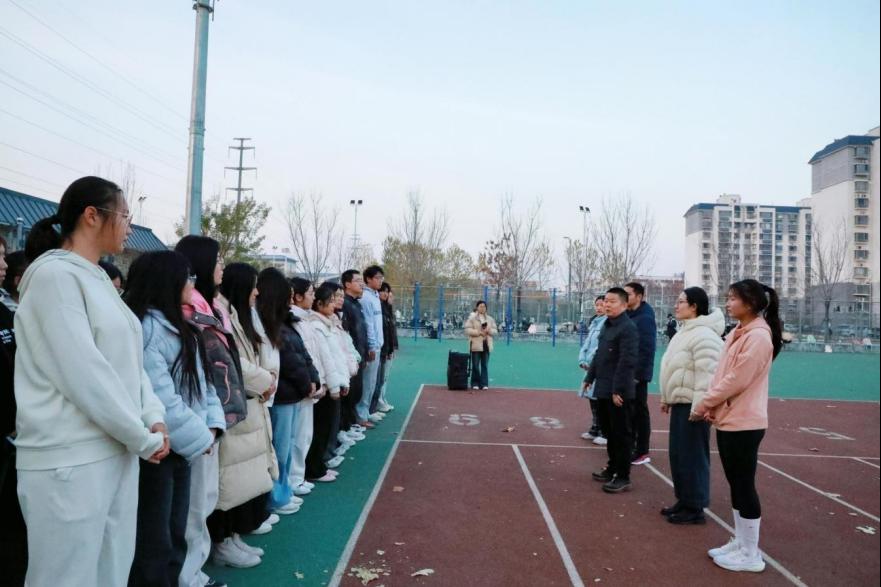 孙超鼓励同学们珍惜此次集中训练的宝贵机会,以科学认真的态度精进技能,以昂扬向上的姿态全身心投入训练,在严寒中磨砺意志,在团队协作中培养集体荣誉感,同时务必遵守训练纪律、注意安全防护,确保冬训过程零事故。他号召全体成员以本次冬训为契机,提高身体素质,增进同学情谊,为明年的春训和运动会奠定基础、积蓄力量。动员讲话结束后,参训学子迅速调整状态,在教练的专业指导下,以饱满的热情投入热身跑、专项体能练习等项目训练中。