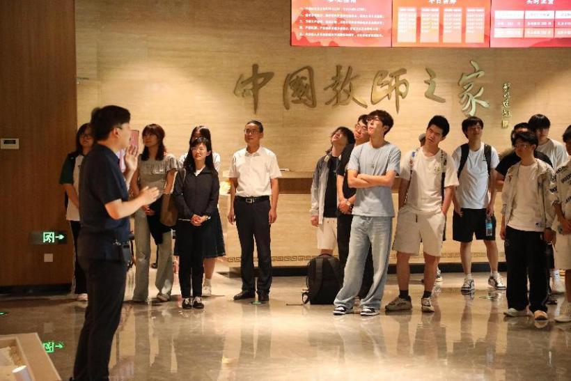 徐瑞教授首先对首都师范大学师生的到来表示热烈欢迎,随后带领两校师生共同参观了中国教师博物馆。在讲解员的引导下,师生们驻足于《教师的历史》《教师的摇篮》《教师的典范》展厅,深刻感受历代师者的崇高品格与不朽贡献,通过珍贵文物和历史照片,师生们深入了解了孔子“因材施教”的智慧、陶行知“生活即教育”的创新理念,以及历代名师在艰苦条件下坚守教育初心的动人故事。