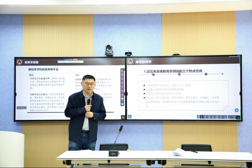 会上,齐军首先对2020-2024年全国及本校教育规划立项情况进行了全面梳理,详细分析了各年度立项数据变化及趋势,为教师们提供了宏观的科研视角。随后,结合近五年的立项选题,分别梳理了教育学原理、高等教育学、课程与教学论、教育史、比较教育学等学科方向的热点问题、未来发展趋势。最后,着重强调了科研选题必须紧密契合国家教育改革的大方向,彰显出应有的学术高度与时代责任感。