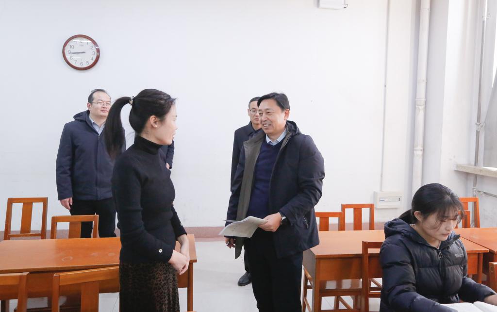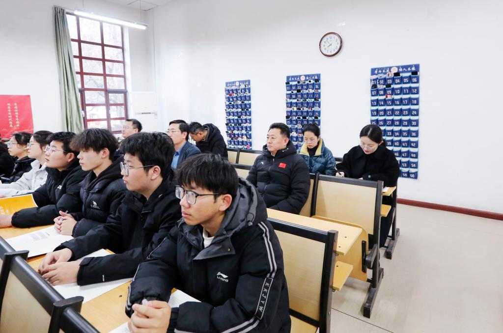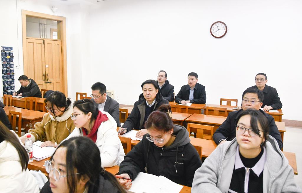 课堂,与学生同听开学第一课。学校领导现场调研教学情况并指导工作,观摩教师授课方法与课堂互动,了解学生听课状态。