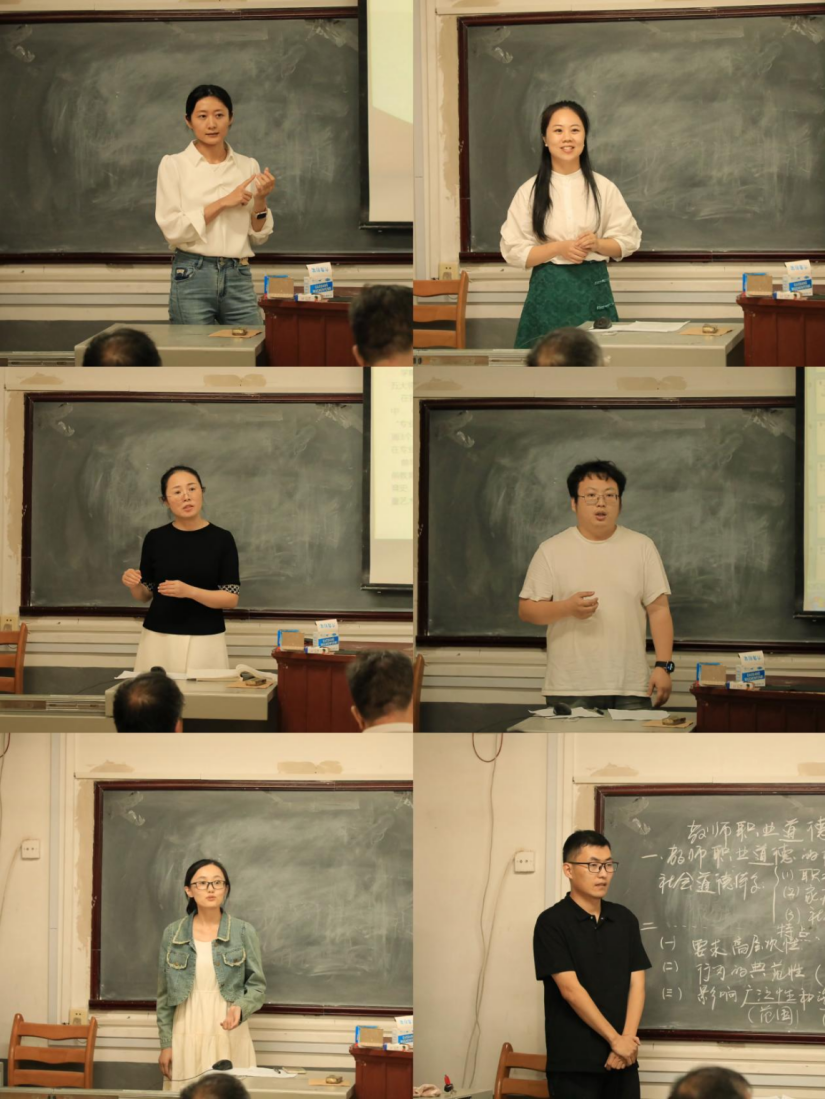 试讲环节中,七位新入职教师围绕教育的起源、教师职业道德、学前儿童的科学教育等方面展开教学,通过多媒体课件、互动教学、案例分析等多种教学手段,以饱满的精神、生动的语言和丰富的教学内容展示了自身良好的专业素养和教学技能。
