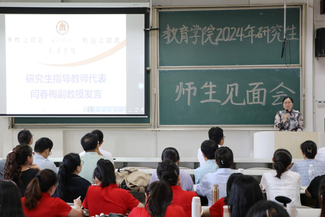 2023级硕士研究生代表教育学原理专业硕士生谢依瞳、2024级研究生新生代表教育学原理专业博士生周佳依次发言,表示将在研究生生涯中不断探索教育界的新领域、新问题,为教育学术理想而不懈努力。