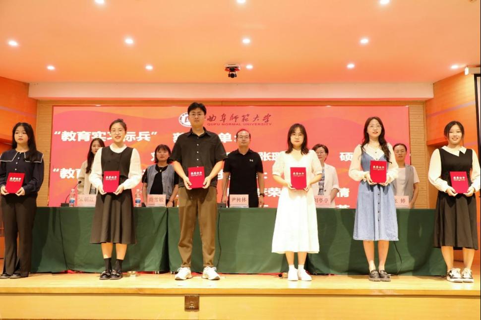 随后,商雪敏老师宣读了获奖学生名单。根据学生实习期间的表现,结合2021级小学教育专业实习报告会评选结果,学院共评定“教育实习标兵”6名、“教育实习先进个人”6名,学院领导分别为获奖同学颁发荣誉证书。