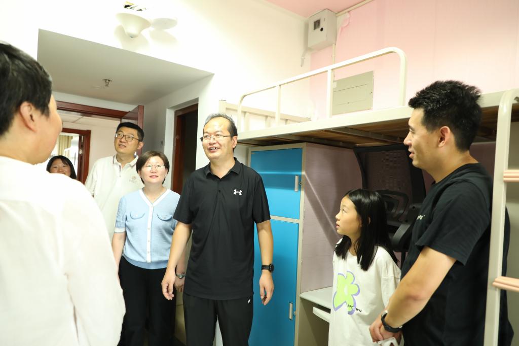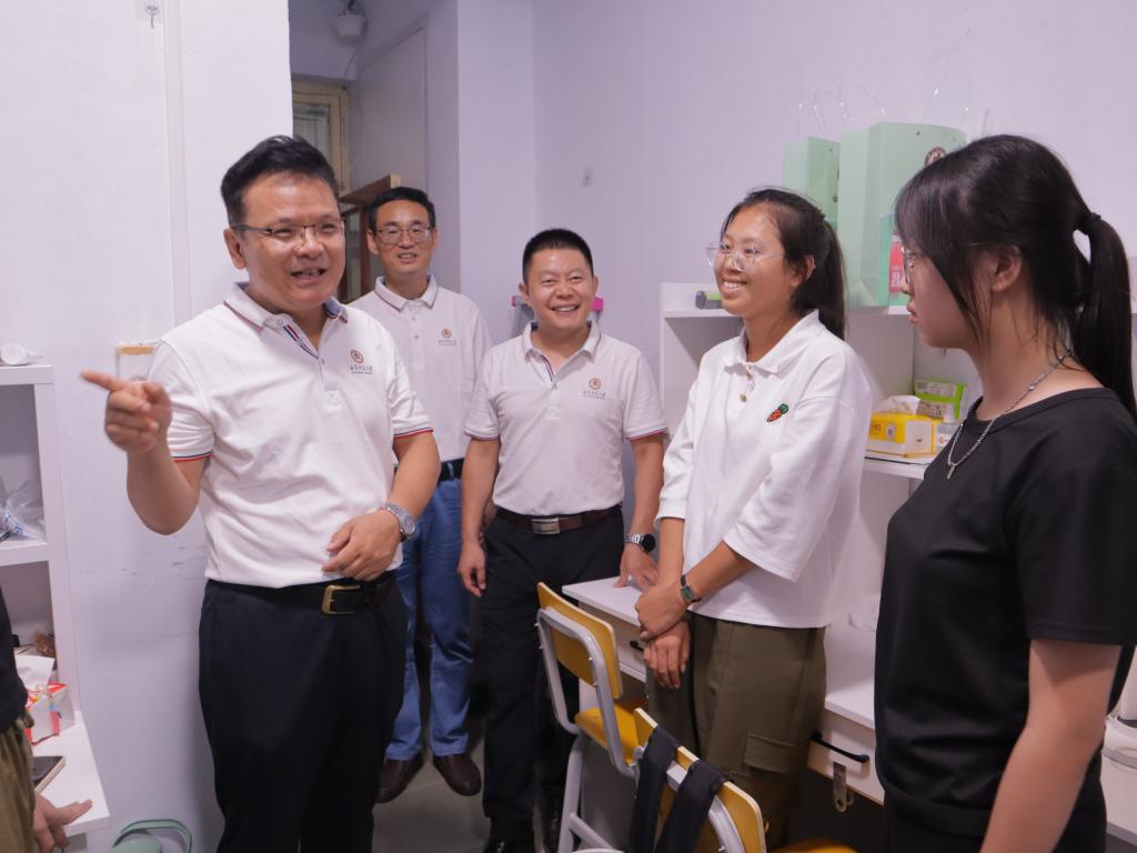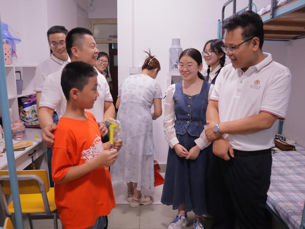 p站视频 讯(周文静  张静怡)9月9日,p站视频 党委书记尹树林,院长唐爱民带领学院领导班子亲临现场指导迎新工作,走进宿舍看望慰问2023级新同学。