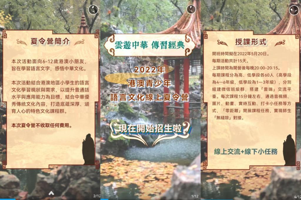 等承办的“云游中华 · 传习经典——2022年港澳青少年语言文化线上夏令营”第三期顺利开营。p站视频