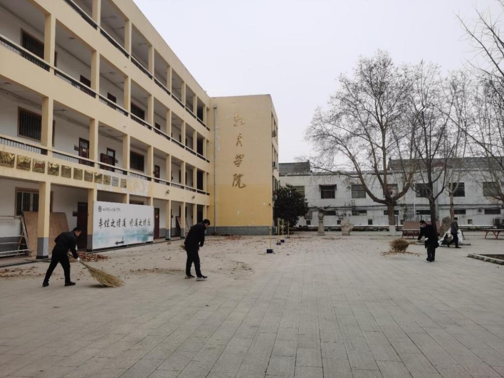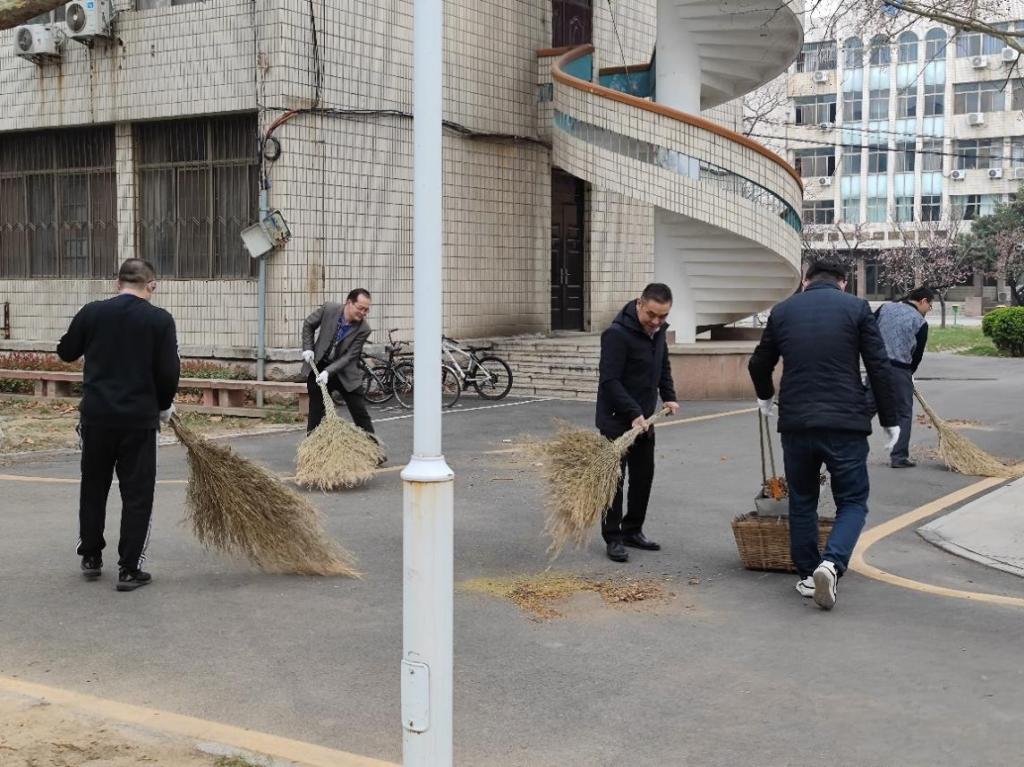 师生员工封闭管理期间,校园环卫工作人手不足,学院楼前堆积了大量枯枝、落叶、尘土和其他垃圾,为使学院附近环境始终保持干净整洁,学院党员突击队自觉自发补位,主动开展打扫卫生志愿服务,进行地面清扫、垃圾清运、环境消毒,保证校园环境卫生安全。