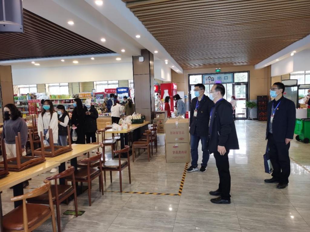 校园封闭管理之后,众多学生一日三餐供给工作繁重,学院党员突击队成员第一时间顶上去,与大学生志愿者一起维持学生购餐就餐秩序,了解学生就餐和其他生活方面的情况,让同学们暖胃更暖心。