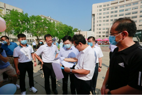 党委书记尹树林、院长唐爱民、党委副书记孙超及辅导员商雪敏在现场对迎新工作进行指导与安排,并与新生进行亲切交流。我院迎新工作人员耐心的为新生核酸检测、入学登记、安排住宿,让他们感受到教育学院的热情和关爱。