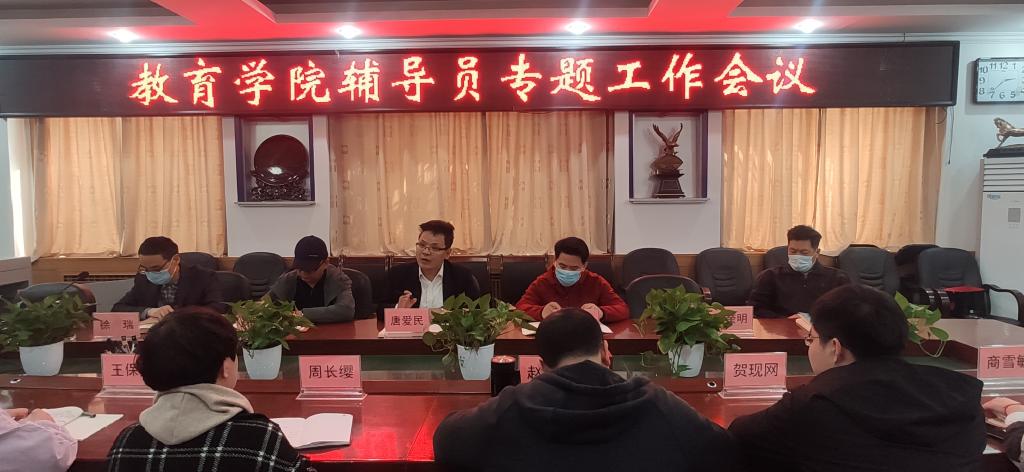 唐爱民结合学院学生工作的实际,全面分析了学院本科生、研究生工作的现状,指出了学生工作存在的问题。唐爱民强调,辅导员在工作中要严守“三条线”,即安全底线、考研主线和特色环线。日常管理中,辅导员要严守安全底线,走进学生课堂、宿舍,和学生经常开展谈心谈话,切实发挥班党员、学生干部的先锋模范带头作用,用丰富多彩的第二课堂活动活跃学院文化建设;专业学习中,要贯彻考研主线,立足专业实际,鼓励学生在考研升学方面铆足干劲,不断拓展学生专业发展层面;特色工作方面,要建立特色环线,围绕“一课一本”计划精心设计活动,做到“一级一特色、一班一亮点、一生一方案”,创新开展学生工作,实现学生自主学习闭环管理。