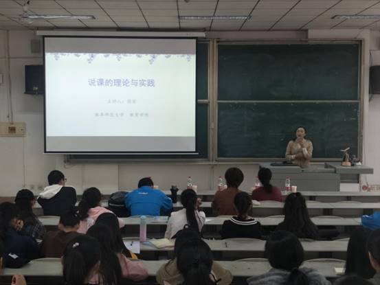 讲座开始之前,徐瑞向同学们介绍了当前师范专业发展形势,并希望同学们能够在此次讲座中学习到更多的从师授课技能知识,做一名合格的师范生。