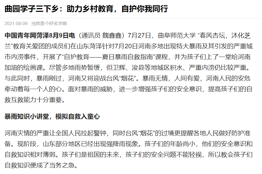 中青网:曲园学子三下乡:助力乡村教育,自护你我同行