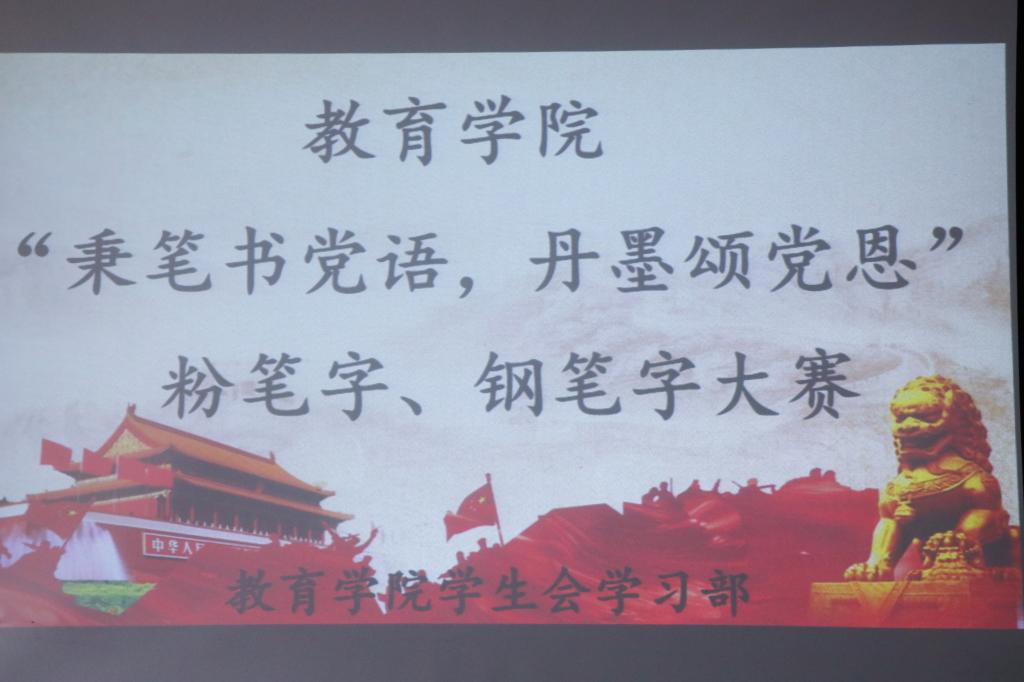 学生会学习部在院楼前举办“秉笔书党语,丹墨颂党恩”粉笔字、钢笔字大赛。p站视频