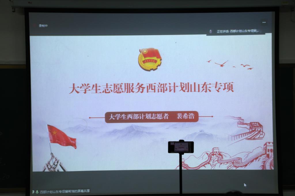 组织学生以线上线下结合的方式观看学校西部计划志愿者分享会(第一场)。