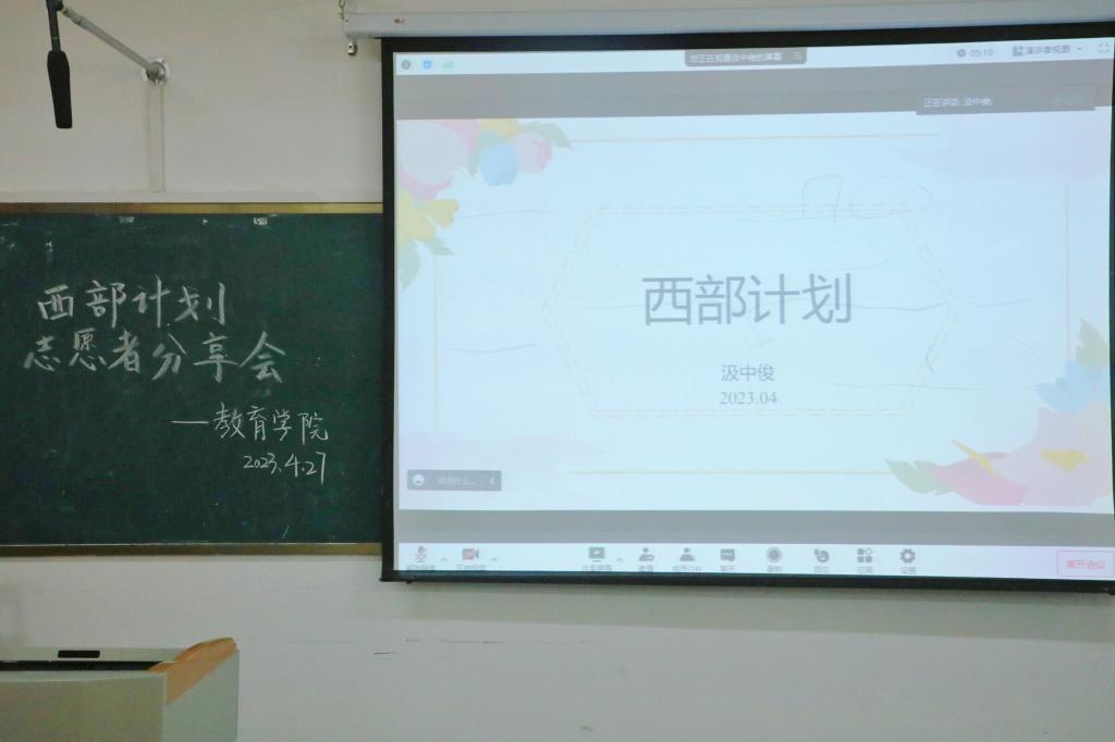组织学生以线上线下结合的方式观看学校西部计划志愿者分享会(第三场)。