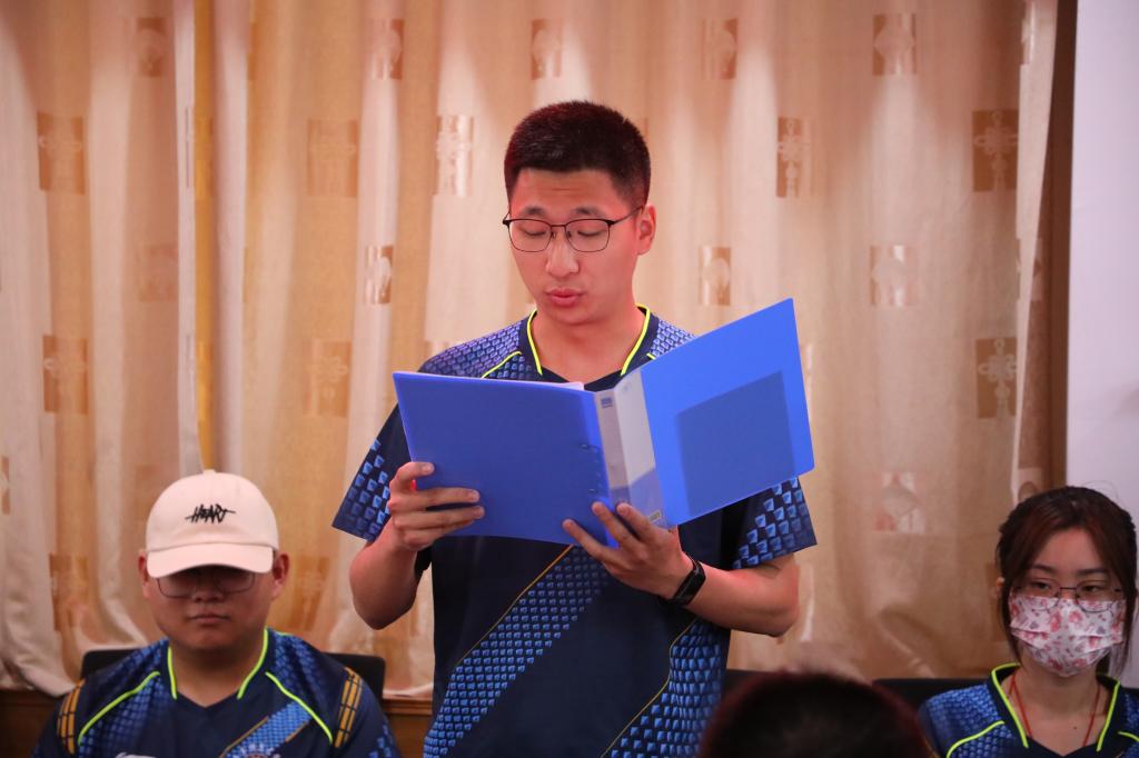 副队长邓明鑫同学发言,作为一名乒乓球队队员,他向教练与师哥师姐的指导帮助表示真诚感谢。他表示将和队员们一起以更加饱满的热情和昂扬的斗志投入到训练当中,全心全意为p站视频