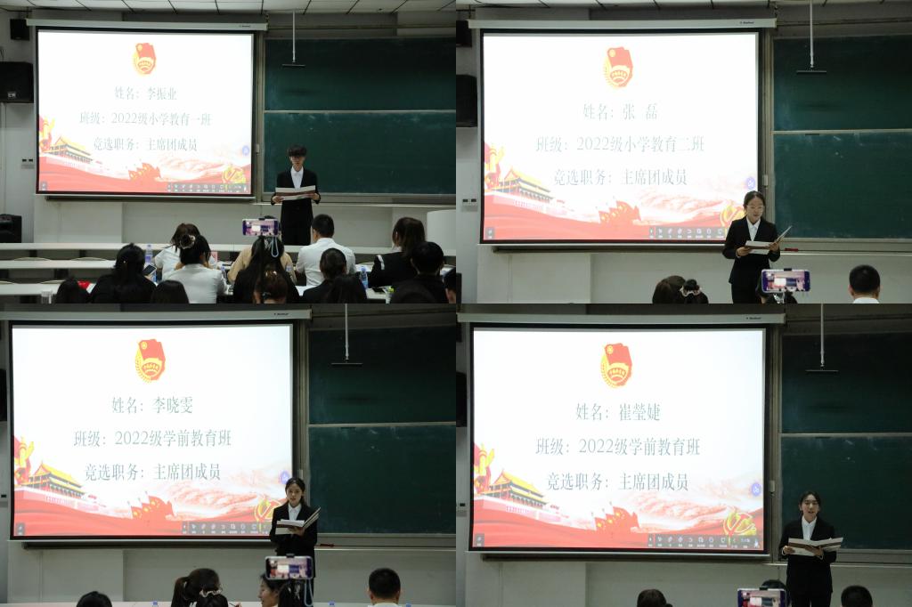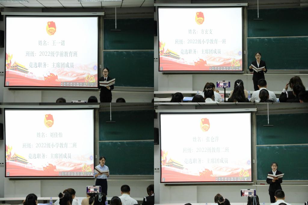 2025届学生会主席团成员候选人依次作竞选演讲和现场答辩。演讲台上,竞选人自信大方,从容应对,各显风采,纷纷表示无论竞选结果如何,都将坚决服从学院安排,再接再厉,严于律己,以身作则,努力做好本职工作,为学院学团工作作出自己应有的贡献。