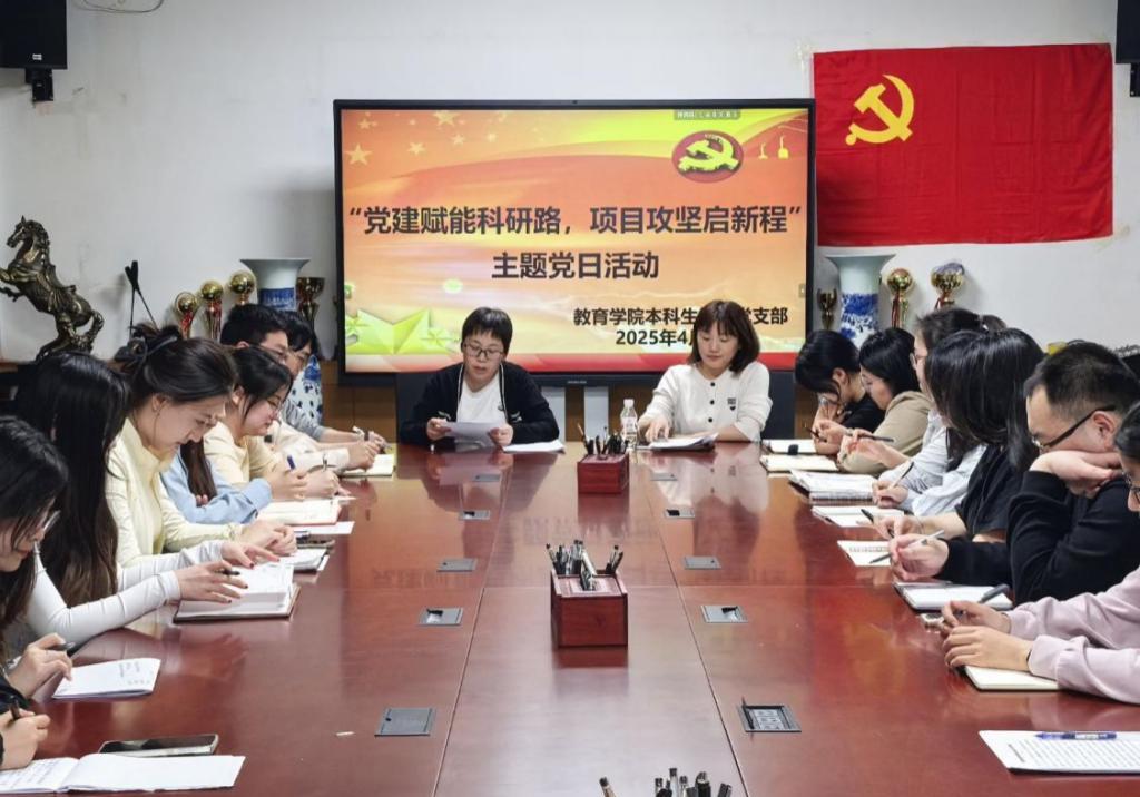 本科生第一党支部于学院101会议室开展“党建赋能科研路,项目攻坚启新程”主题党日活动。活动由2021级本科生党员牛鑫颜、丰晓雪同志作专题分享,党支部书记王保英主持活动,党支部全体党员参与学习交流。
