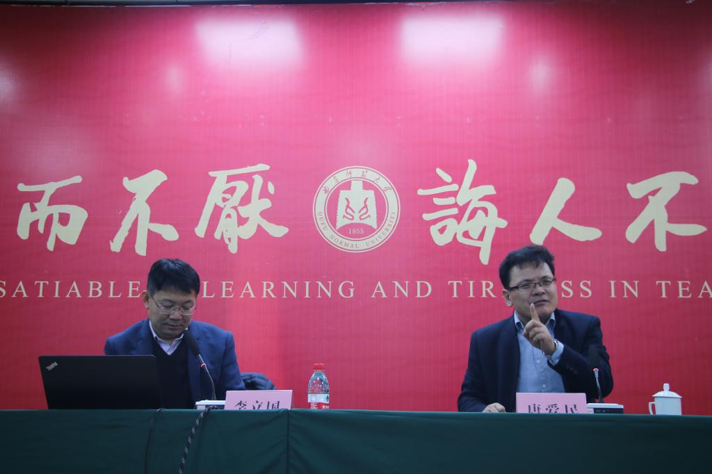 向李立国教授的到来表示热烈欢迎,并对其进行介绍。李立国教授向同学们分享了自身与高等教育、大学治理的渊源,并对大学治理相关内容进行讲解。报告中指出,大学既是学术组织,也是大型社会组织,需要学术治理,也必须依靠科层治理维持运转。大学兼具理性组织与政治组织双重属性,具有自主性、非营利性、利益相关性、目标模糊性的特征,受制于外部环境和内部领导决策的影响,使得大学治理成为一个复杂的问题。一个好的大学需要结合高超的治理能力和优秀的制度供给,寻求最佳治理模式与治理路径,创造外部影响力与内部自主办学相互平衡、相互结合的治理方式。