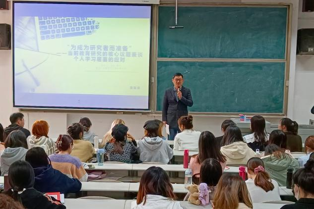 邀请新加入学院学术共同体的李凯副教授在综合楼101教室为2019级全体学生带来了一场题为《为成为研究者而准备:当前教育研究的核心议题兼谈个人学习层面的应对》的学术报告。周日下午的综合楼101教室,座无虚席。报告开始前,p站视频