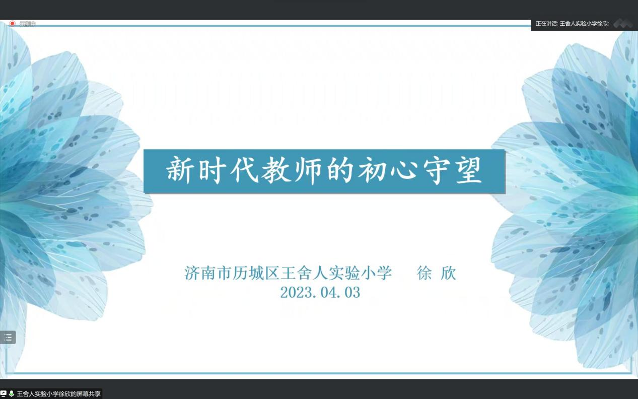 徐欣校长首先从个人的教育事业历程中讲述她对教育工作的认识与情感,她强调小学老师应当全面发展,厚实专业底蕴,凝聚专业智慧,做好学校哪里需要就投身哪个学科教育教学的准备。随后,徐欣校长在报告中展示了王舍人实验小学的综合实践课程成果,介绍了如何进行课题引领,以研促教,在课程中实现五育融合,赋能学生成长。